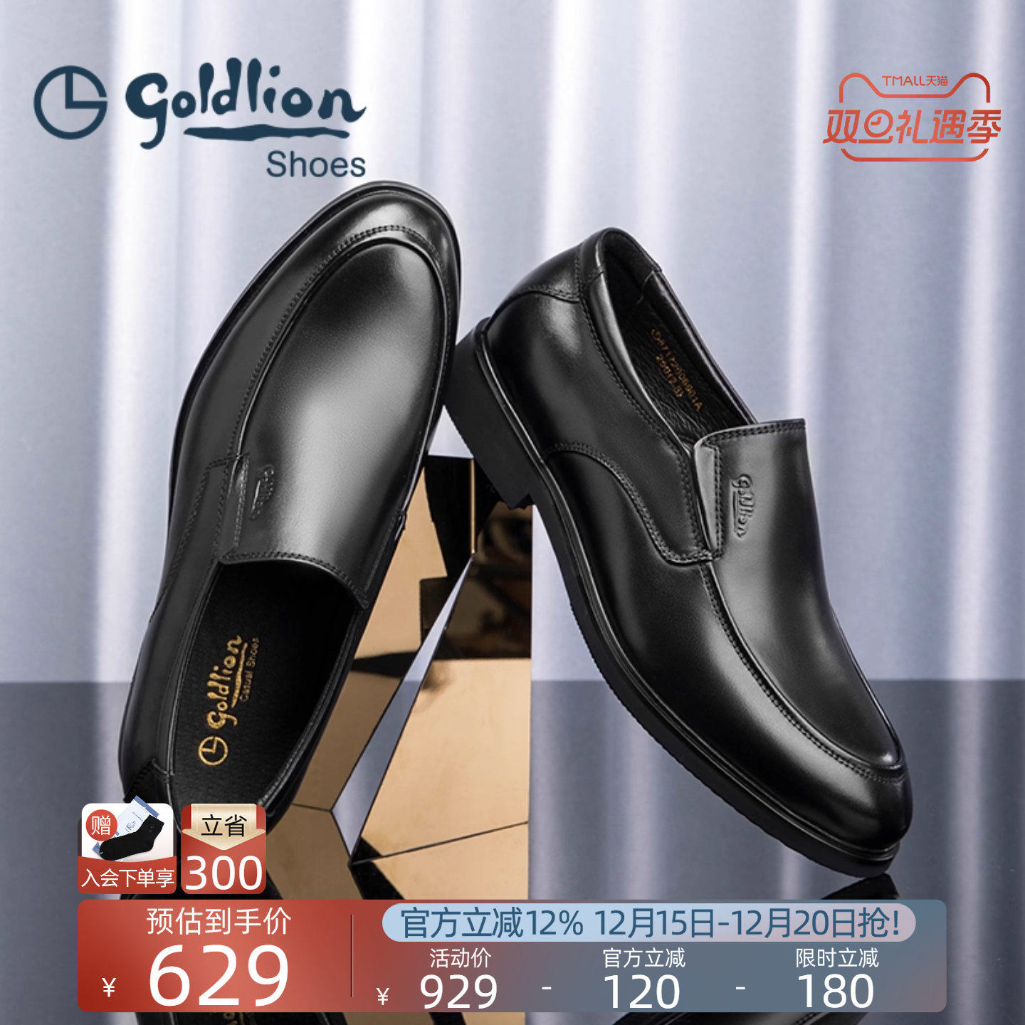 Goldlion men's shoes official genuine autumn and winter new dad business leather shoes men's one-foot leather loafers