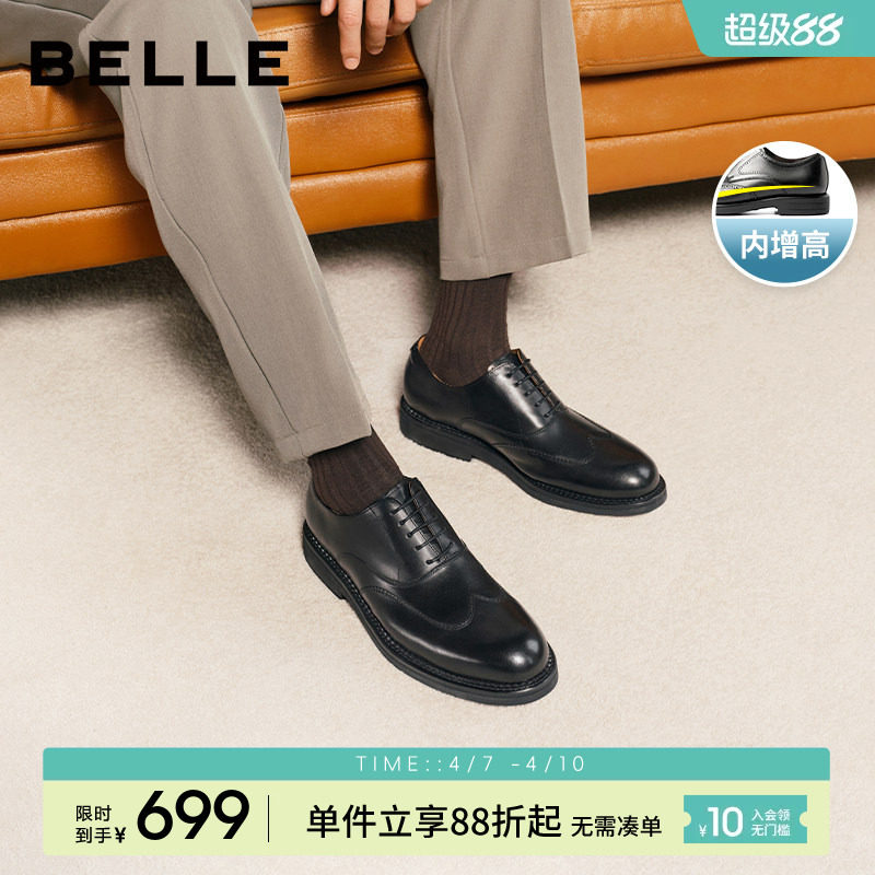 Belle Men's Spring and Summer Breathable Casual Business Formal Leather Shoes Three-joint Thick Sole Heightened Wedding Shoes B3229A