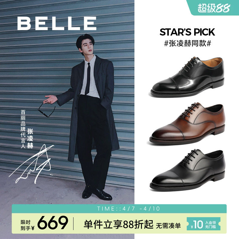 Belle Men's Casual Business Formal Leather Shoes Men's 26 Spring New Gift Box Cowhide Groom Wedding Shoes A2266AM6