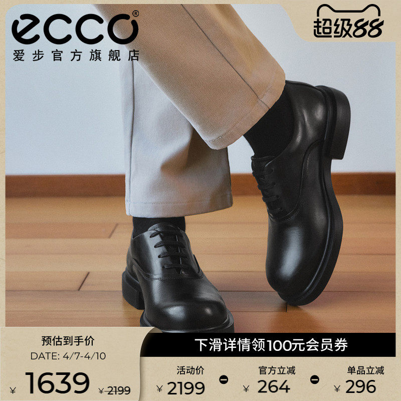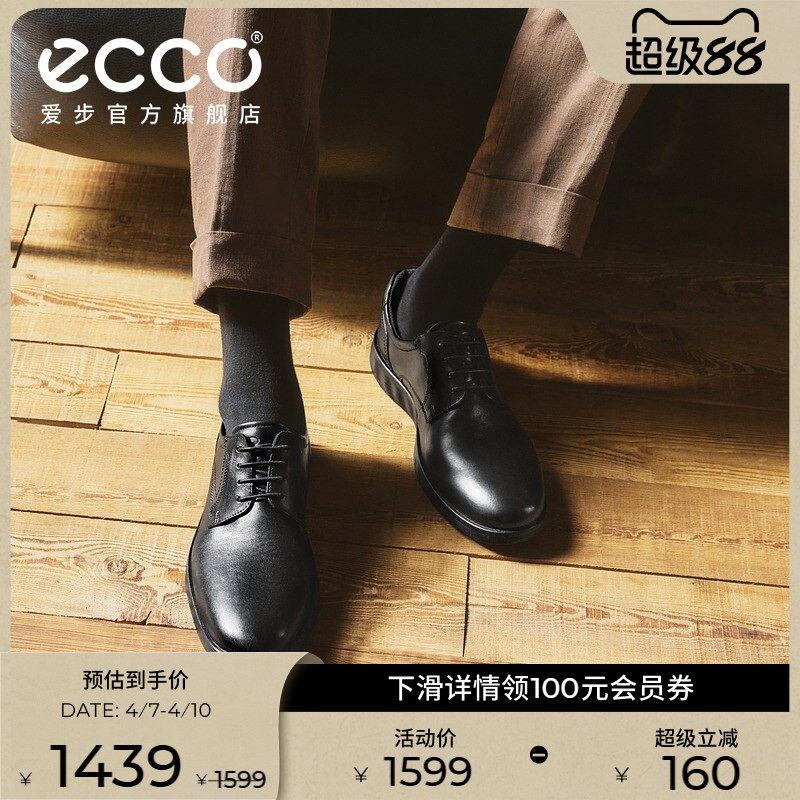 ECCO Aibu Men's Classic Derby Shoes Spring and Summer Genuine Leather Shoes Heightened Business Dress Shoes Moben 621634
