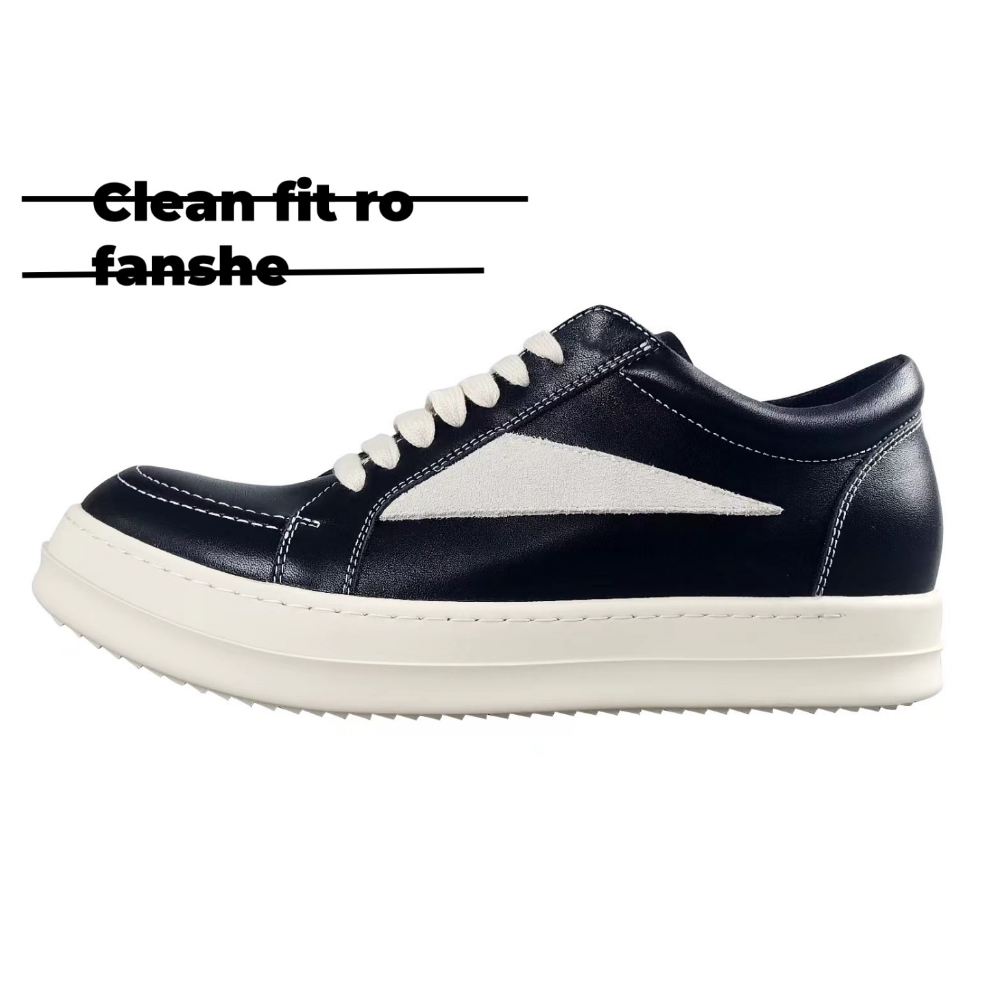 "NO LOGO" low-top infringement cowhide heightening board shoes, high street low-top black and white leather shoes