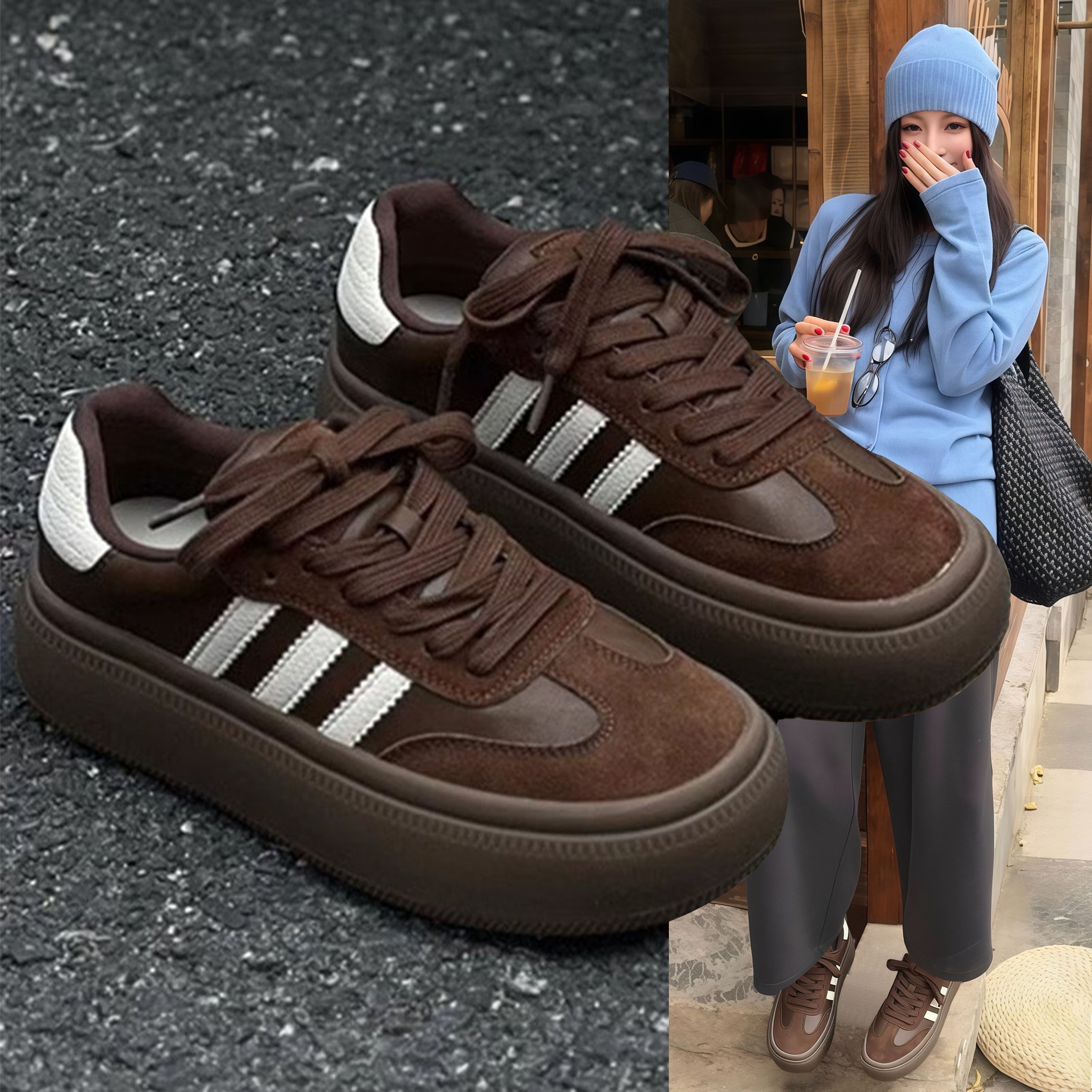 Hong Kong leather platform sole heightened German training shoes women's 2025 spring and autumn new sports and casual shoes muffin retro board shoe trend