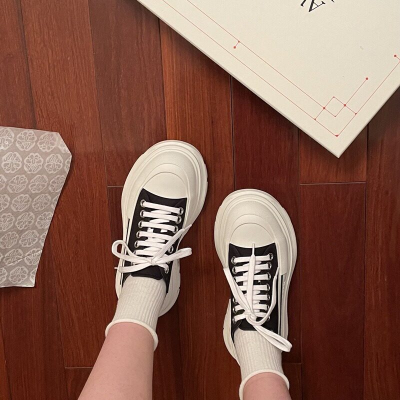 Hong Kong couple casual shoes, canvas shoes, daddy shoes, trendy new McQueen versatile platform heightened canvas white shoes