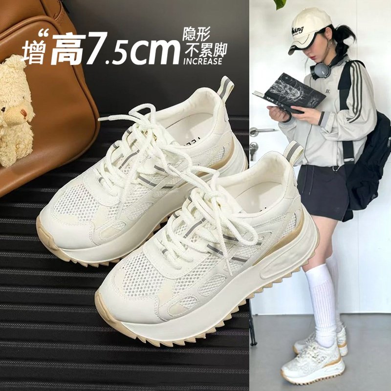 Hong Kong fashion breathable mesh Forrest Gump women's 2026 spring and autumn new simple platform sports inner height white shoes