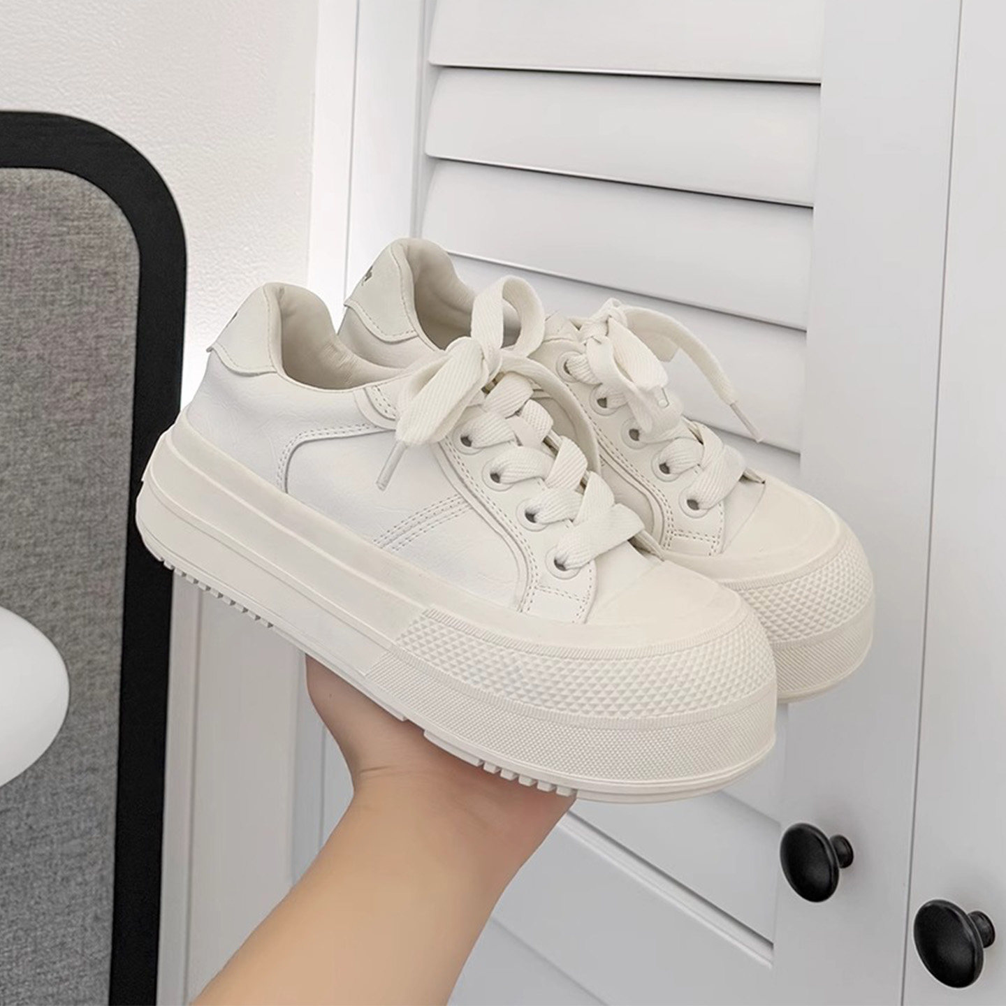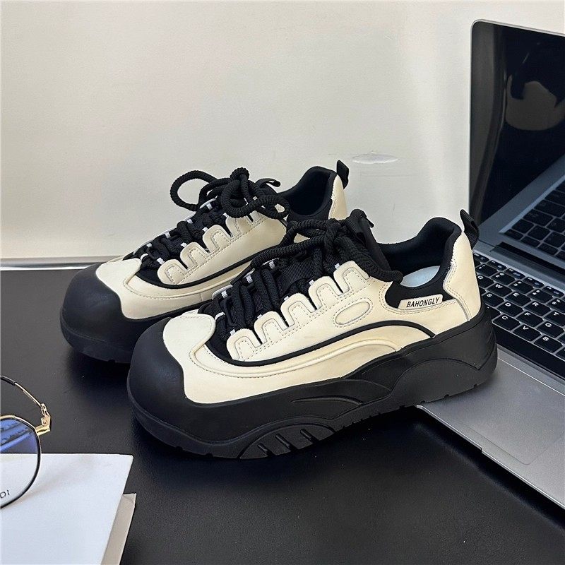 Hong Kong big head and white shoes women's 2026 summer new leather muffin thick-soled ugly mesh breathable casual board shoes