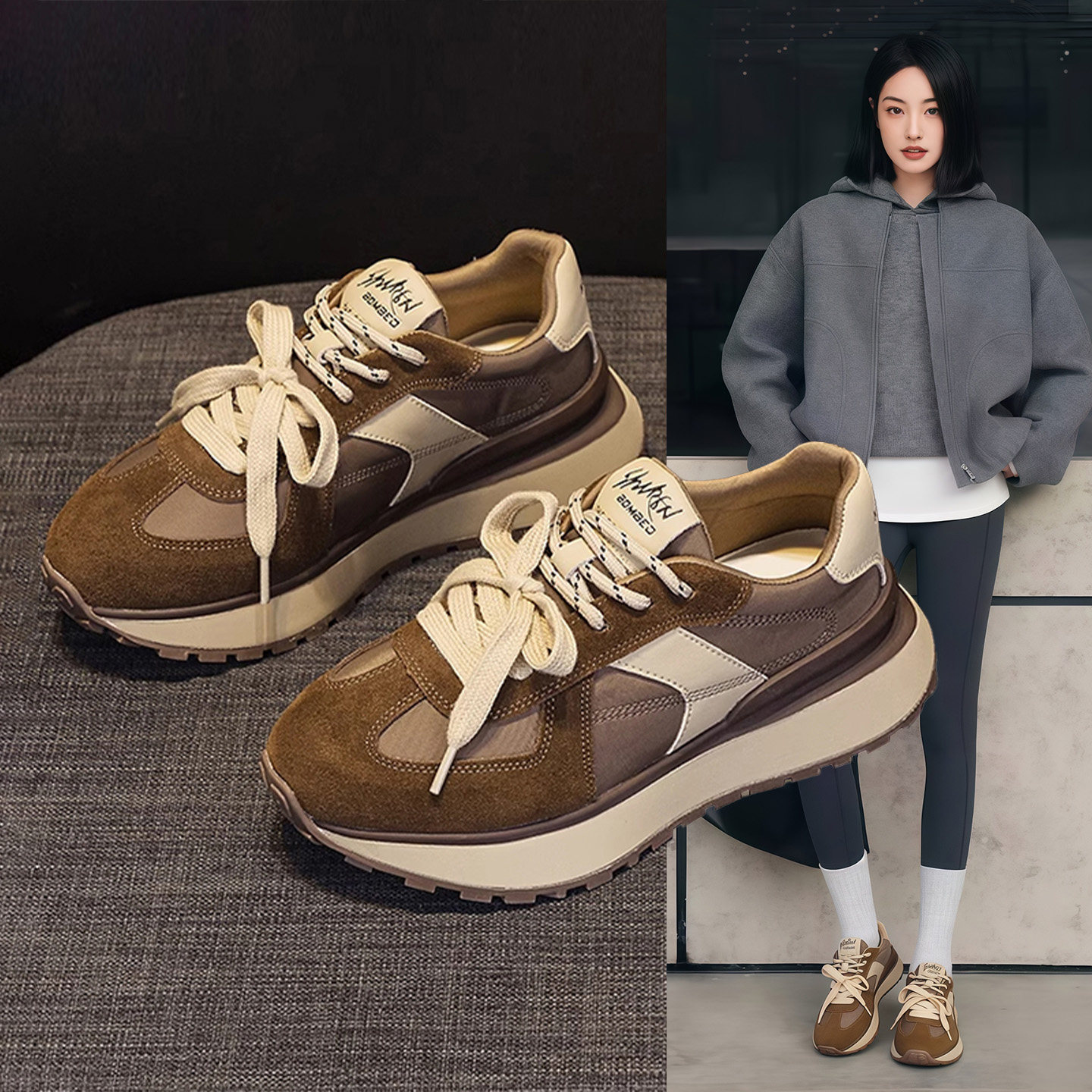 Hong Kong temperament is versatile, 7.5CM height increase thick-soled daddy shoes women's 2025 spring and autumn new high-end sports and casual shoes