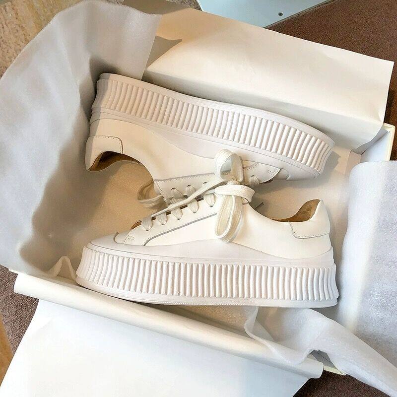 Hong Kong platform white shoes casual single shoes women's 2025 spring and autumn new heightened leather biscuit shoes lace-up board shoes