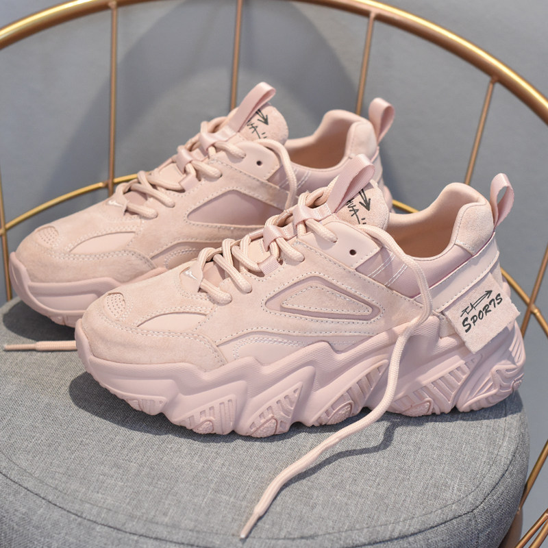 Hong Kong platform height increase pink dad shoes leather women's ins trend 2025 spring and autumn show feet small casual sneakers