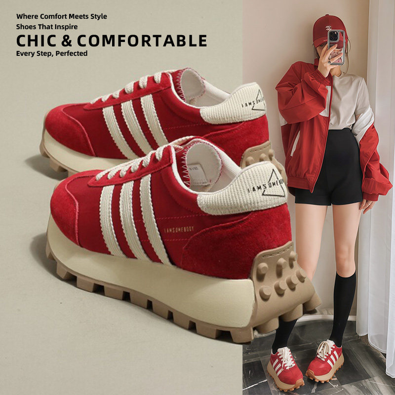 Hong Kong Red Forrest Gump Shoes Women's 2025 Spring and Autumn New Super Fire Thick Sole Genuine Leather Versatile Running Shoes Waffle Sneakers