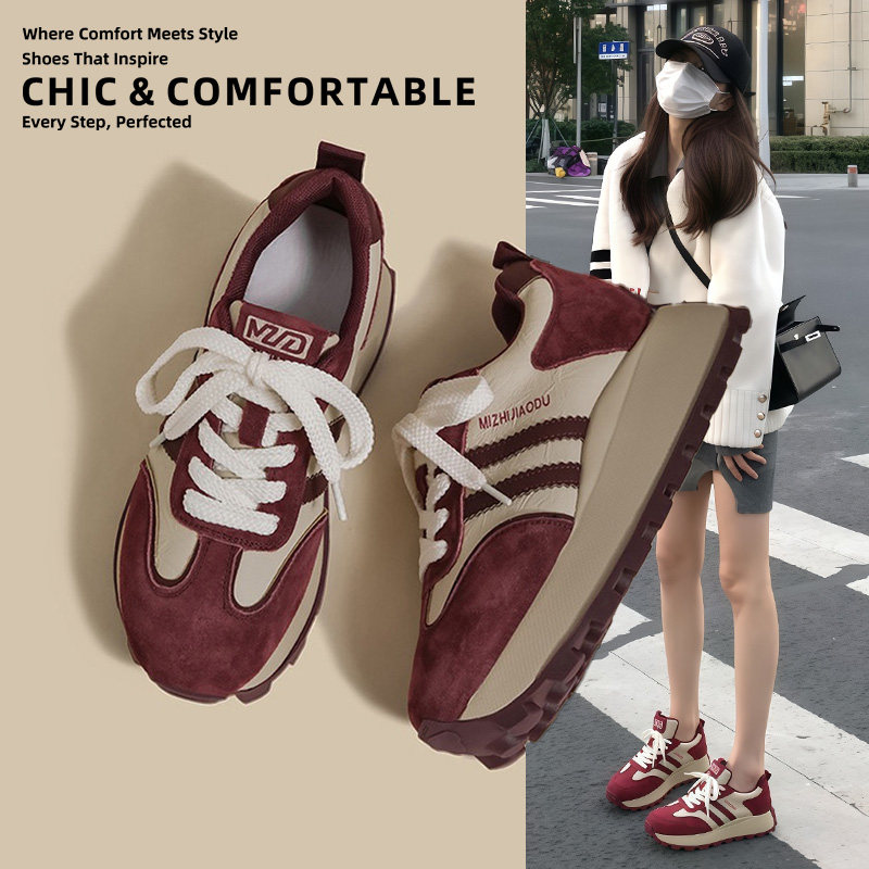 Hong Kong 2025 Spring and Autumn New Encore Red Leather Versatile Retro German Training Shoes Women's Thick-soled Casual Sports Board Shoes