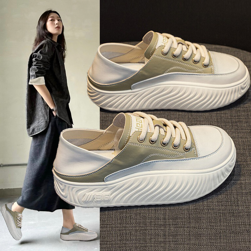 Hong Kong leather platform sole heightened white shoes women's 2025 spring and autumn new big head ugly cute stepping on feeling bread shoes Korean version