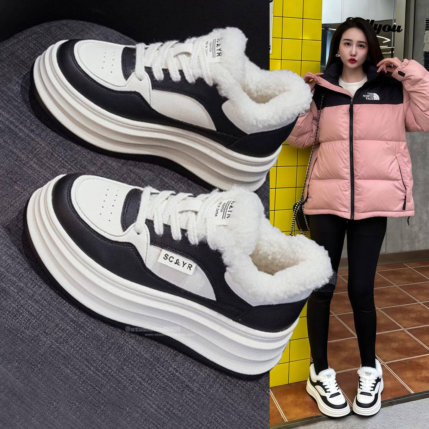 Hong Kong fleece white shoes women's 2025 spring and autumn new cotton shoes, platform soles, small people, versatile casual shoes, sports shoes