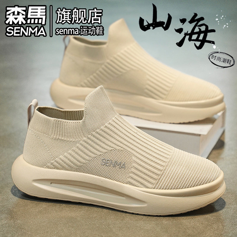 Semir men's shoes winter breathable flying weave athleisure mesh mesh shoes men's lightweight soft soles one-foot sock shoes