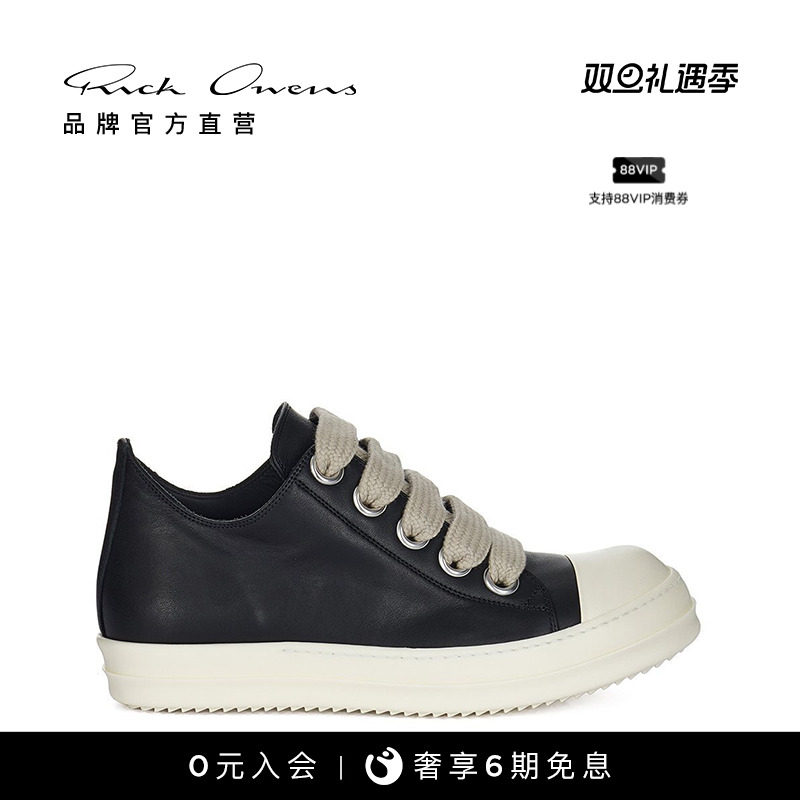 RICK OWENS Fall/Winter 25 Men's Black Chunky Lace Leather Low-Top Sneakers
