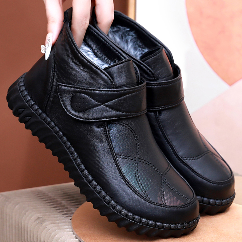 Regular foot winter plush old Beijing mother cotton shoes non-slip flat leather warm grandma cotton boots for women