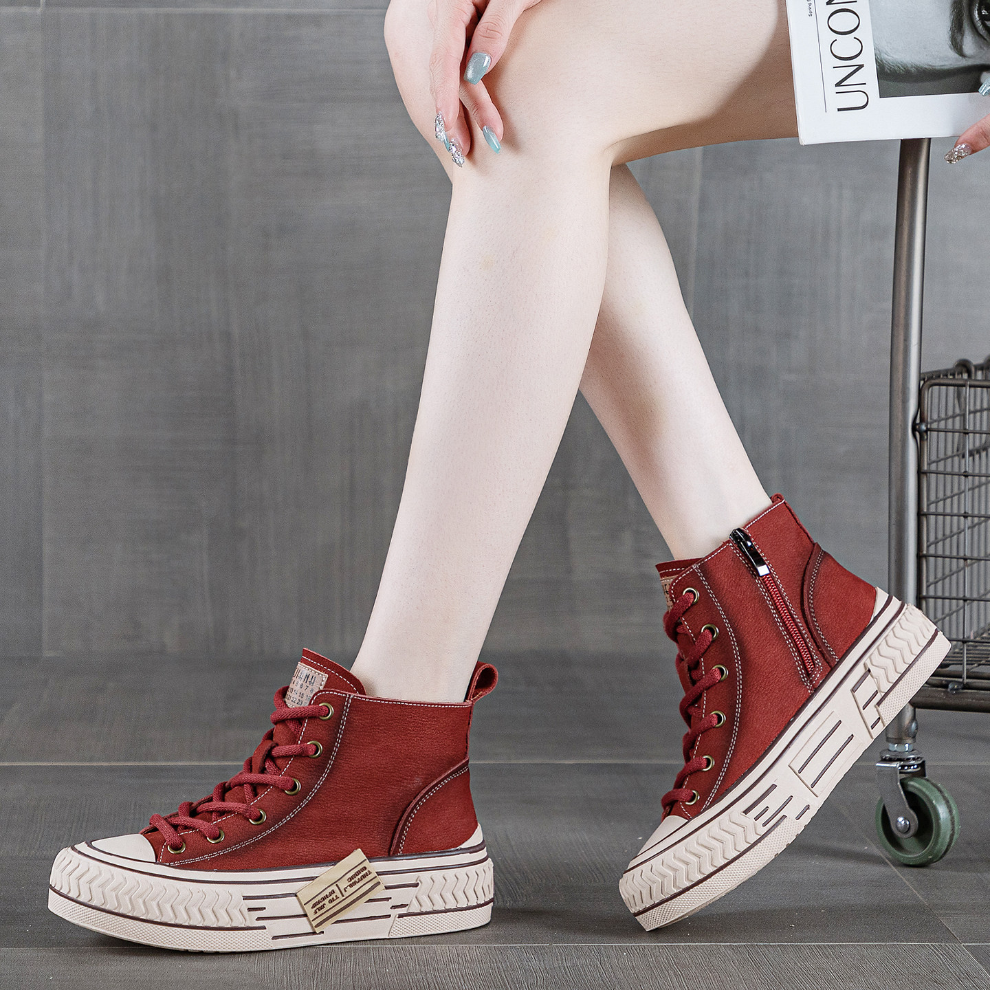 Top layer cowhide high-top board shoes women's 2026 spring and autumn explosive thick-soled versatile casual shoes comfortable soft-soled muffin single shoes