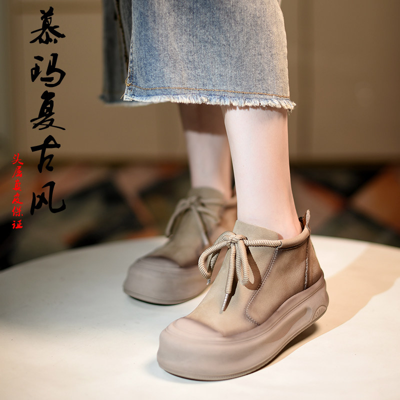 Top layer cowhide 2026 autumn soft sole soft surface thick-soled forest women's casual shoes high-top shoes leather literary retro shoes