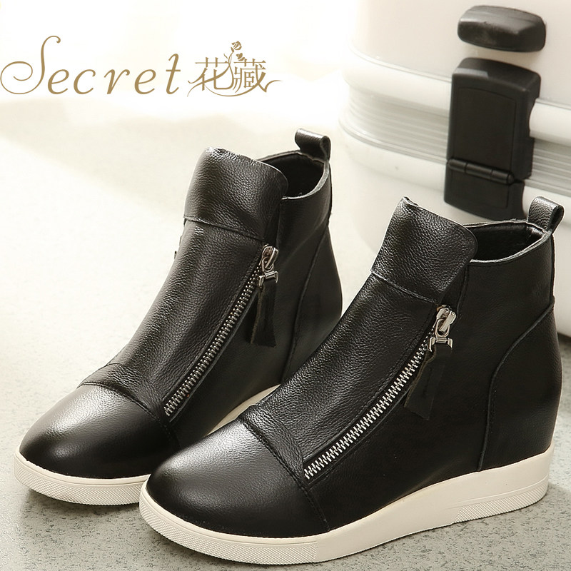 Leather version ~7cm small inner height increase retro classic college style platform high-top casual shoes women's lace-up booties