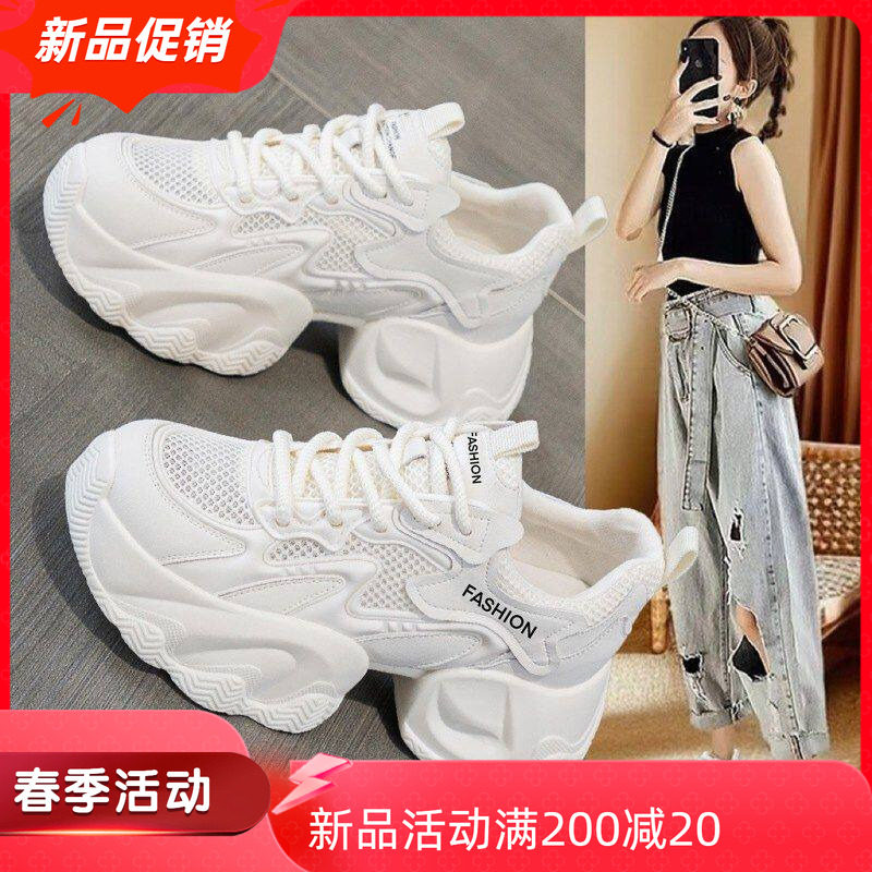 Hong Kong Genuine 2026 Summer New Women's Explosive Platform Daddy Shoes Mesh Breathable Casual Sports White Shoes