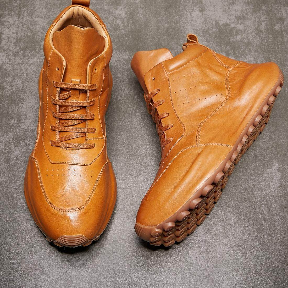 RO shoes men's inverted triangle high-top shoes top layer cowhide high street men's shoes increase height milky thick sole couple casual board shoes