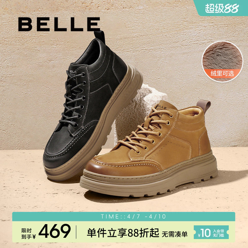 Belle winter men's shoes, outdoor overalls, warm boots, high-top casual board shoes, fleece cotton shoes, A1332DD3