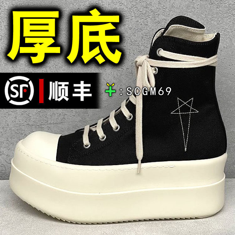 RICK OCEAN RO all white platform sole inverted triangle independent main line leather surface milk fragrant sole high street high-top shoes OWEN