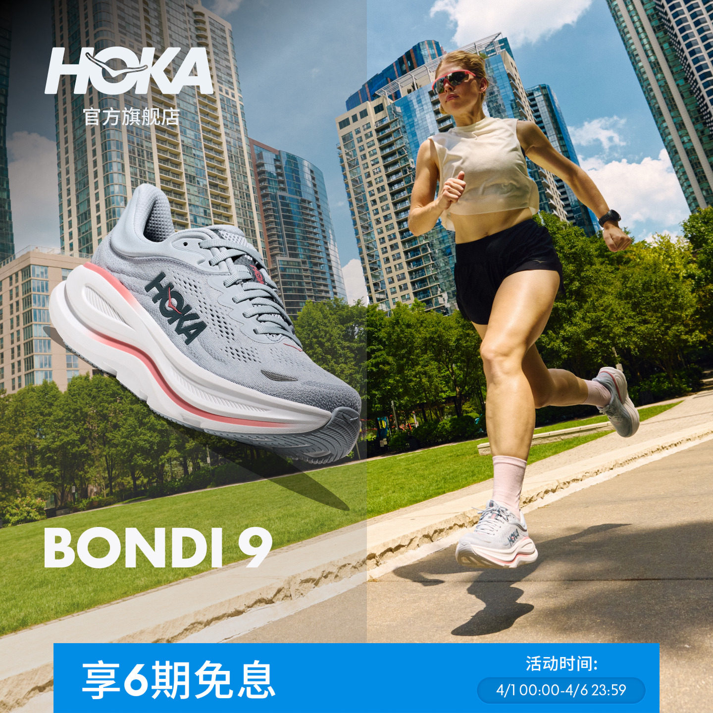 HOKA's new women's spring and summer Bondi 9 road running shoes BONDI 9 are breathable, lightweight, comfortable, cushioned and non-slip