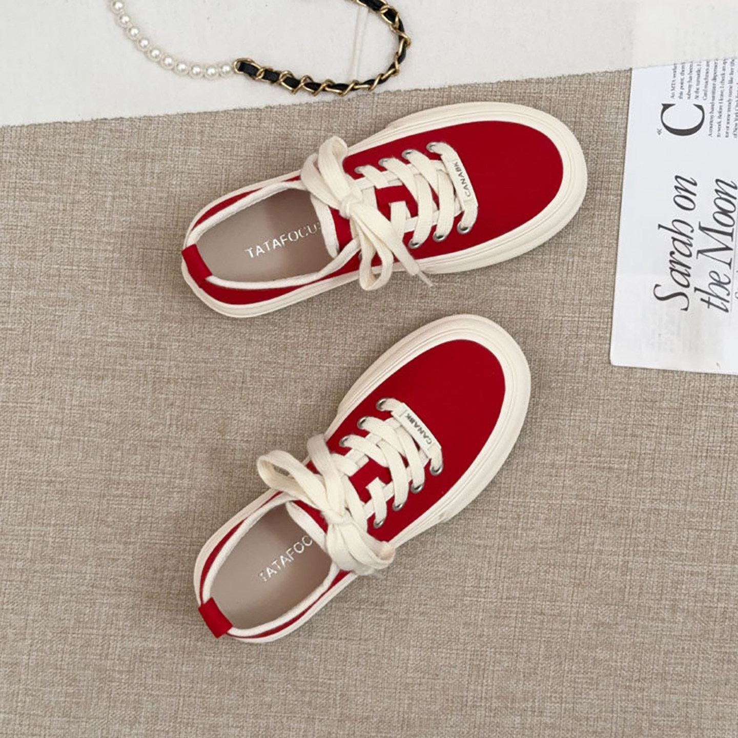 Italy SANLI ~ Retro simple platform canvas shoes women's new low-top round toe lace-up versatile casual board shoes