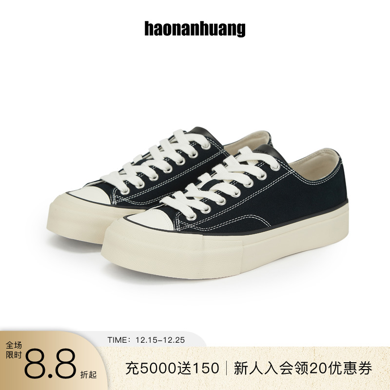 【White Deer Same Style】Ouder smiler canvas shoes women's thick soles increase height round toe black and white big toe shoes