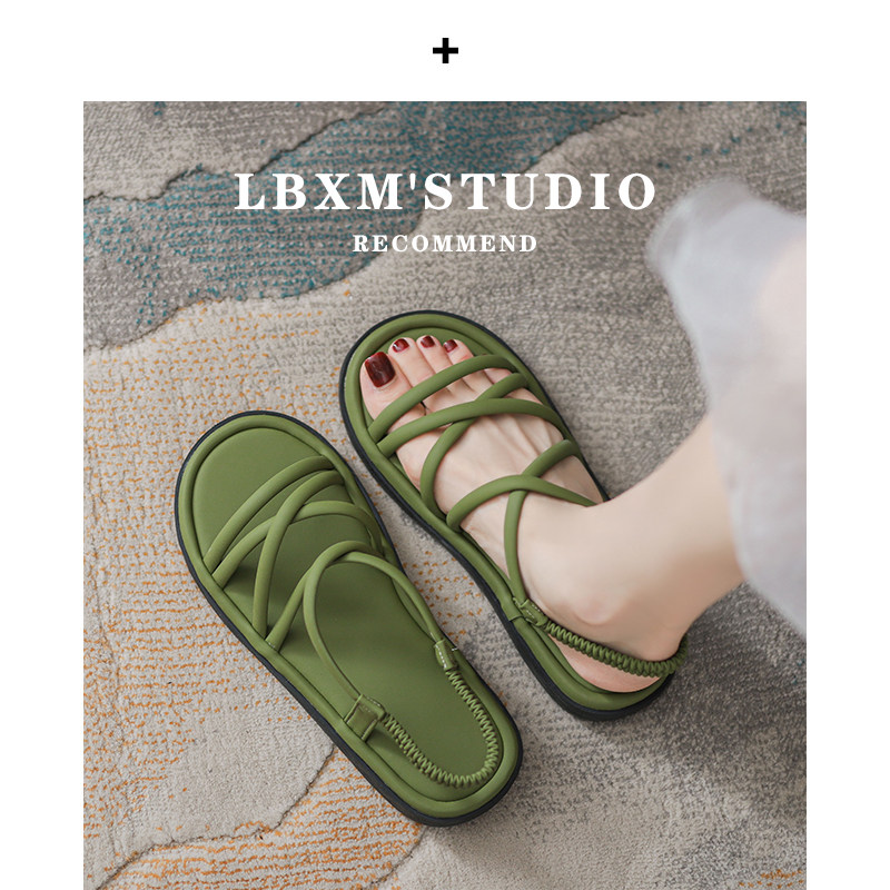 Soft soles don't tire your feet~ Green sandals Women wear new casual open-toe flat Roman beach shoes for summer 2025