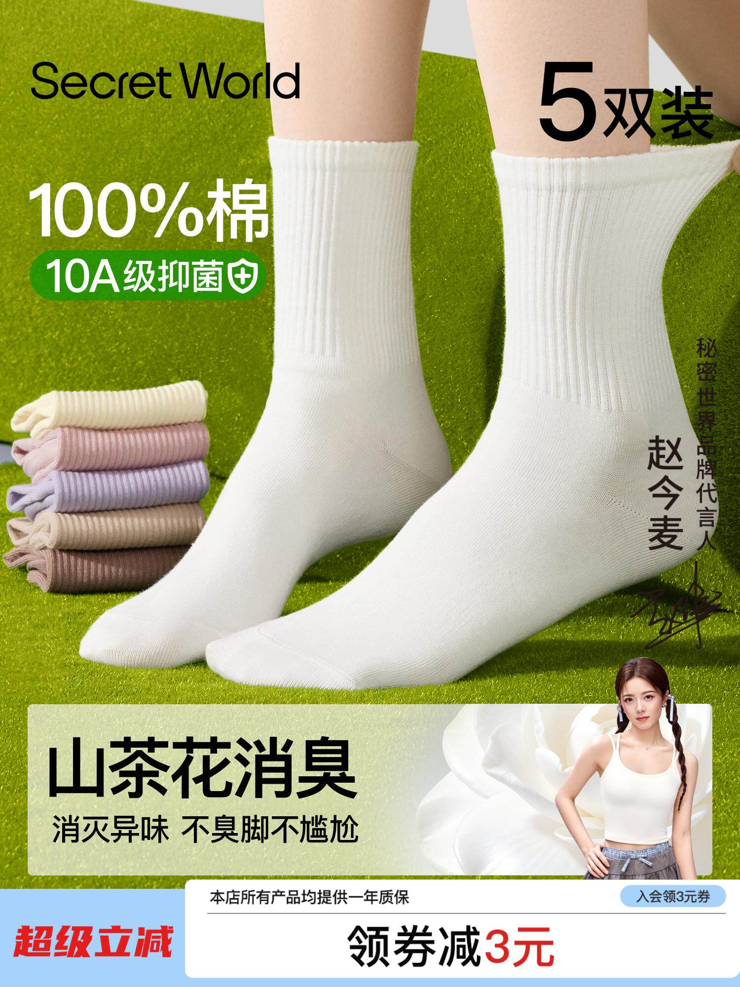 Camellia Deodorizing Socks for Women, Summer Thin Pure Cotton Mid-Calf Socks, Seamless, Odor-Resistant, Antibacterial, All-Cotton Maternity Socks
