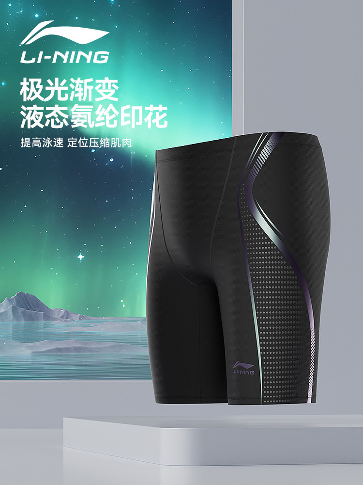 Li-Ning Men's Swim Trunks, Professional Racing Five-Point Style, New Swimming Trunks for Teenagers and Adults, Training Sharkskin, Anti-Embarrassment