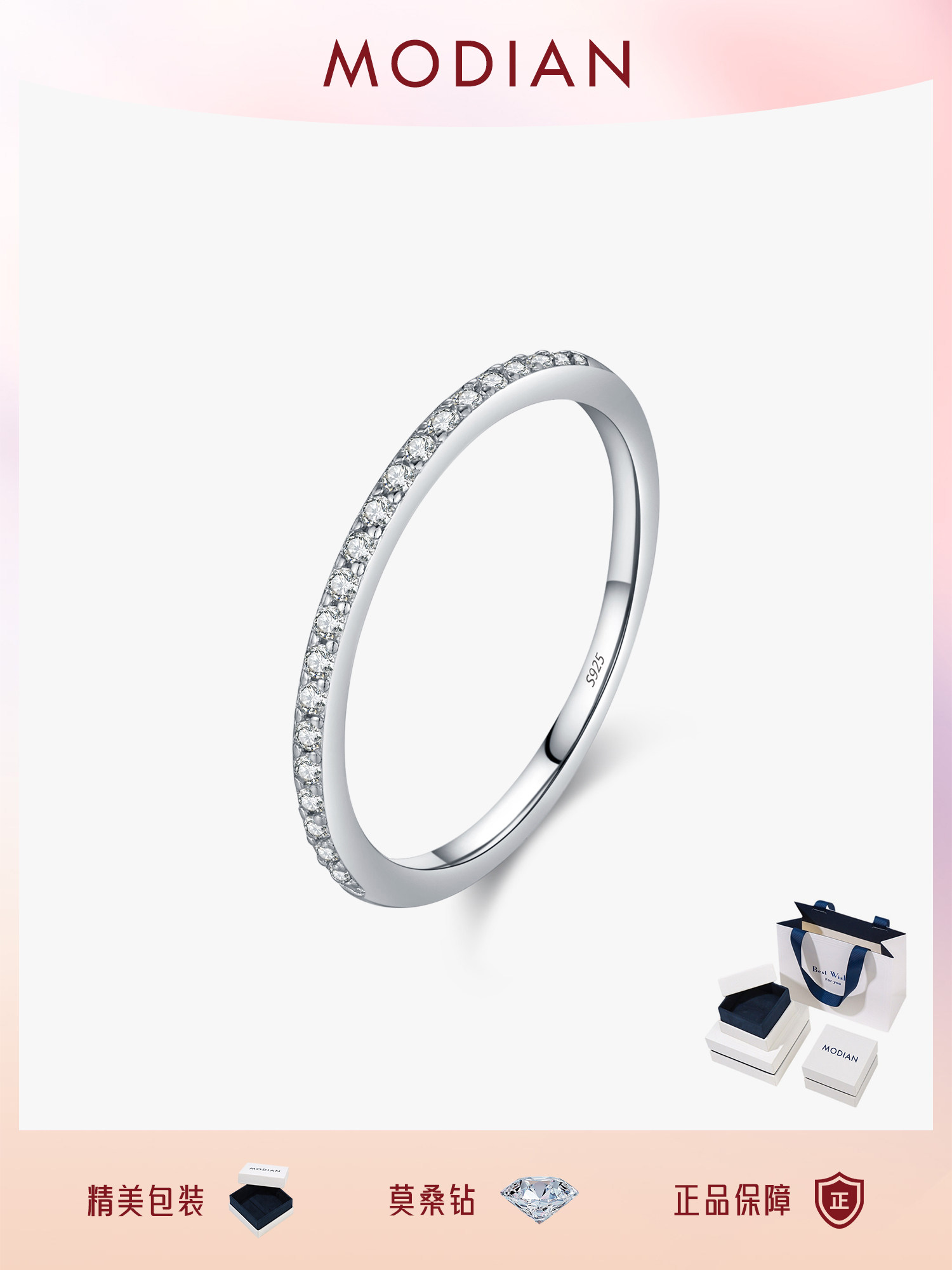 Modian Moissanite S925 Sterling Silver High-End Sparkling Row Diamond Ring for Women Couple Gift for Girlfriend