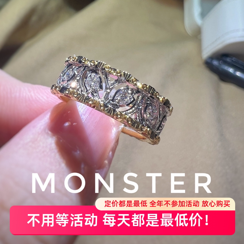 18K Gold Textured Carved Gold Retro Style Cut Out Leaf Contrasting Ring Italian Palace Style Chalage Handmade