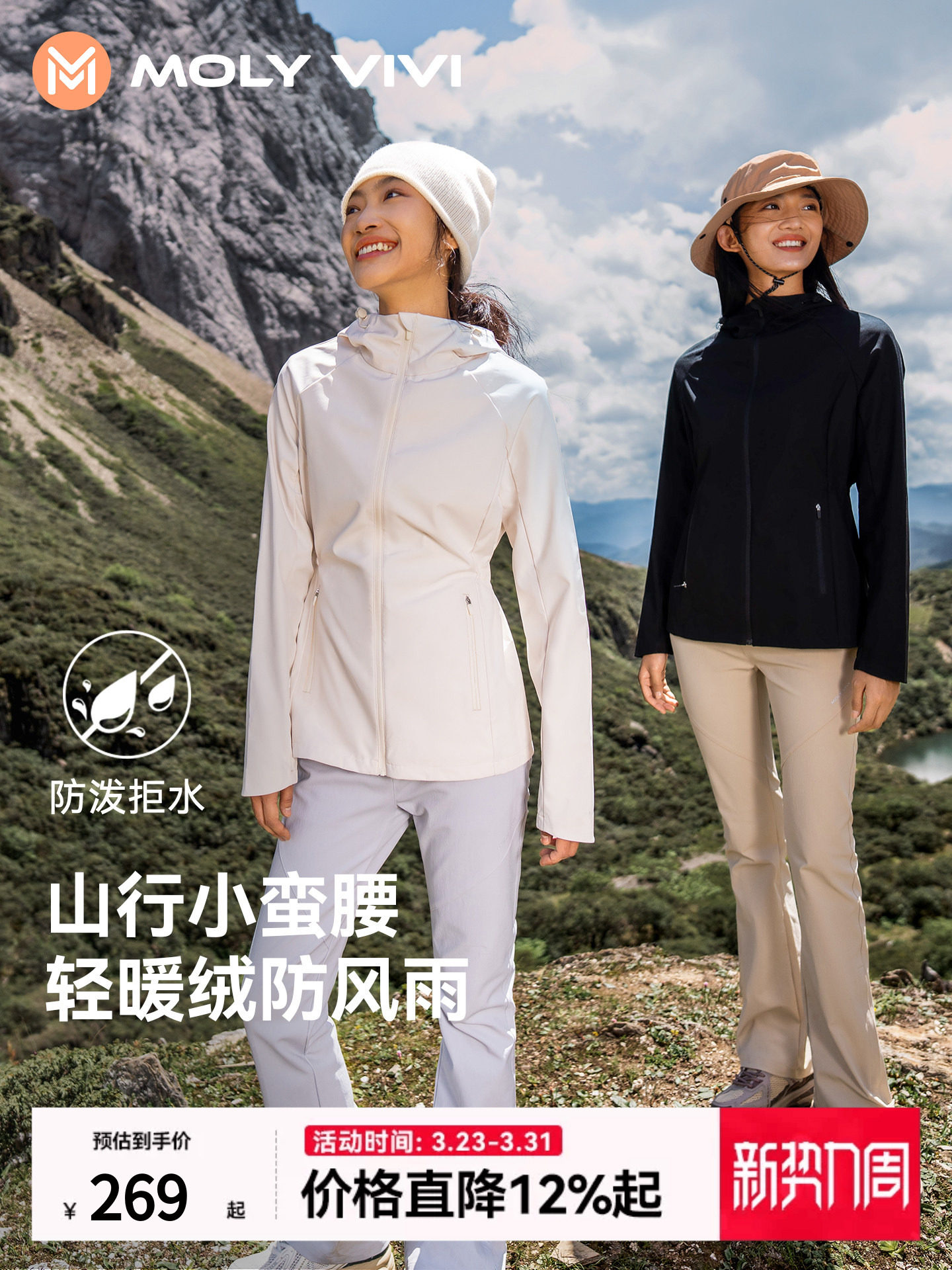 Magic Weiwei Mountain Hiking Slim Waist Soft Shell Jacket for Women, New Spring/Summer Windproof Waterproof Outdoor Sports Hiking Clothing
