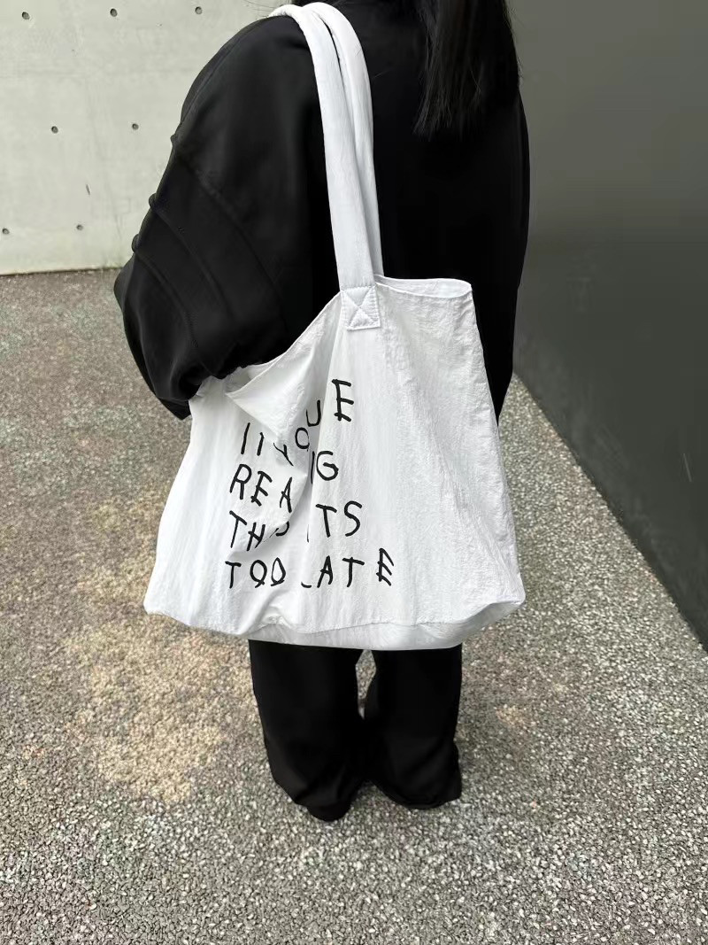 Summer New Style Black and White Simple Large-Capacity Nylon Canvas Bag Lightweight Printed Hand-Held Commuting Shoulder Tote Bag