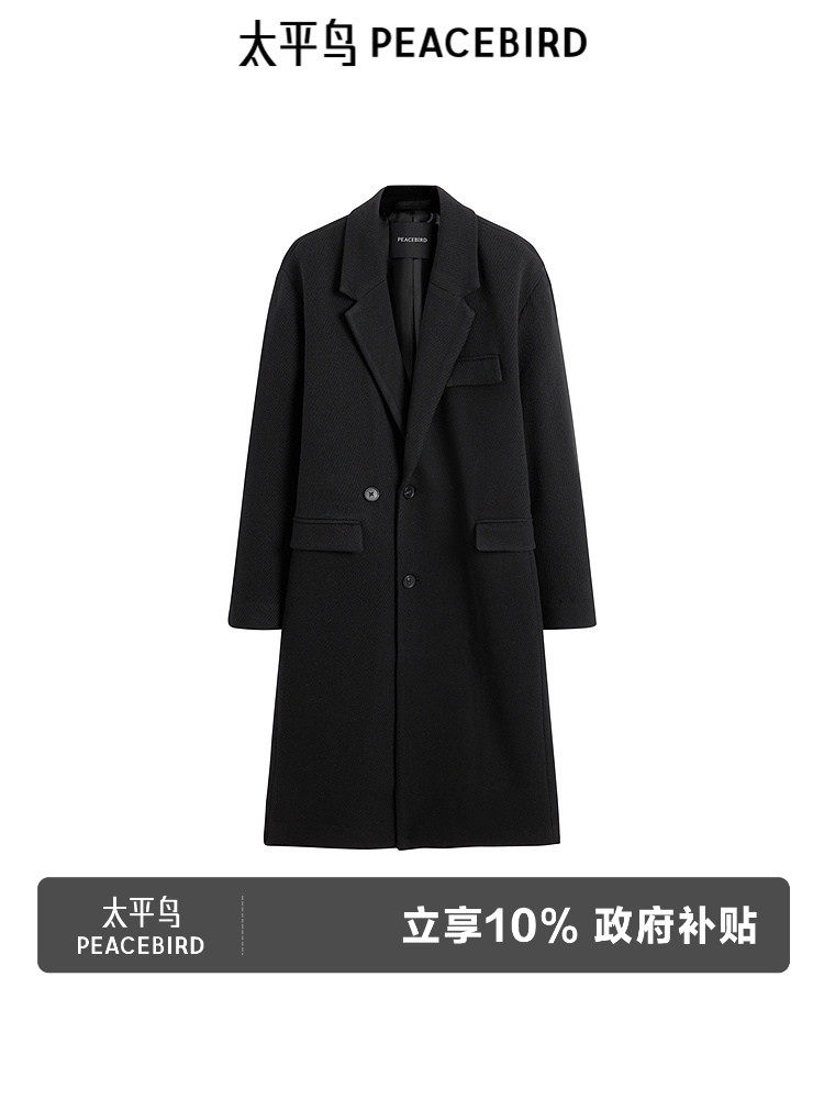Peacebird Men's Clothing Black Woolen Coat Men's Casual Wool Double-Sided Woolen Casual Long Coat Men's