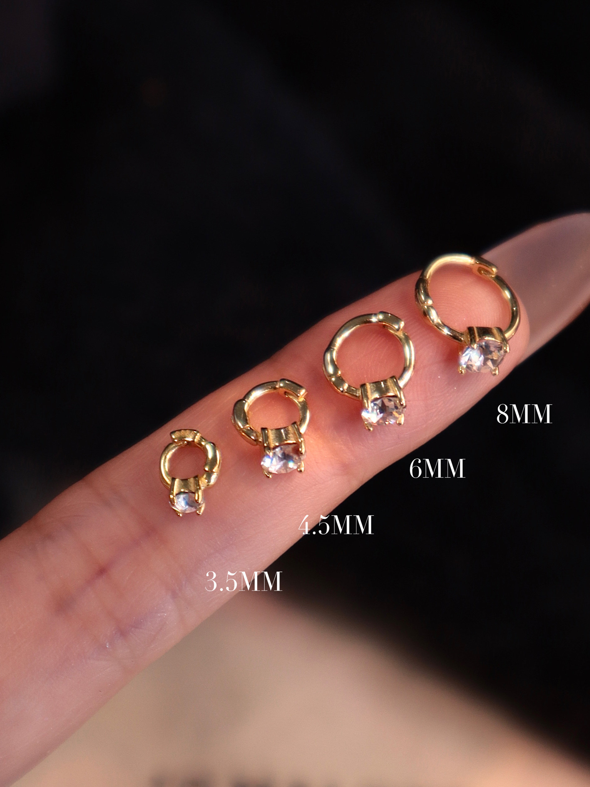 Single Piece Ultra-Mini Ear Studs, No Need to Remove When Sleeping, Swarovski Rhinestone Small Hoop Earrings, Pure Silver Thick Gold-Plated Ear Cartilage Studs