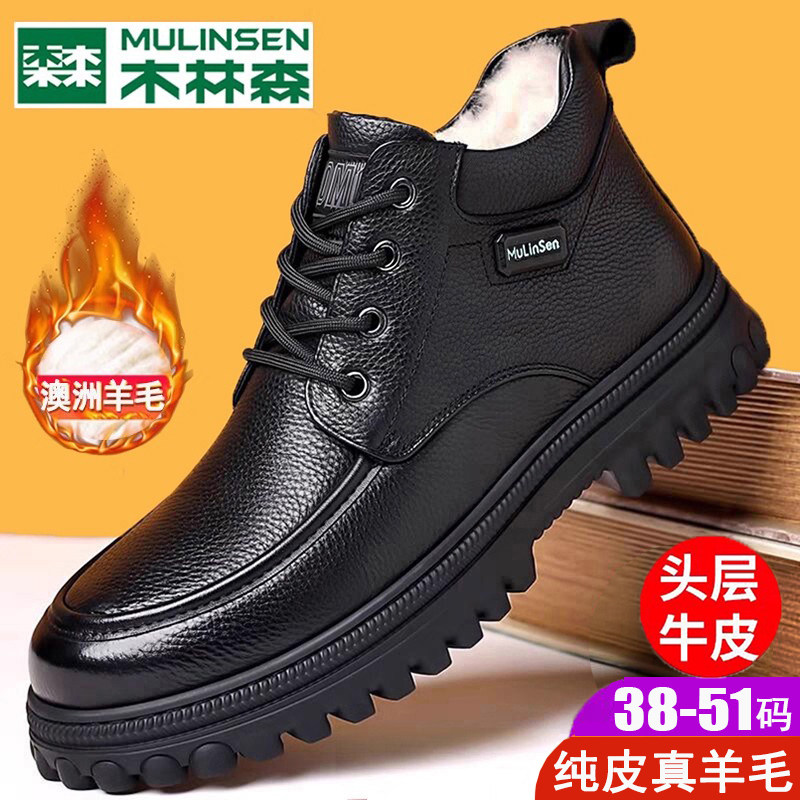 Mulinsen Large Size Men's Shoes Genuine Leather 46 Wool Fleece-Lined Cotton Shoes 47 Extra Large 48 Snow Boots 49 High-Top Leather Shoes 50
