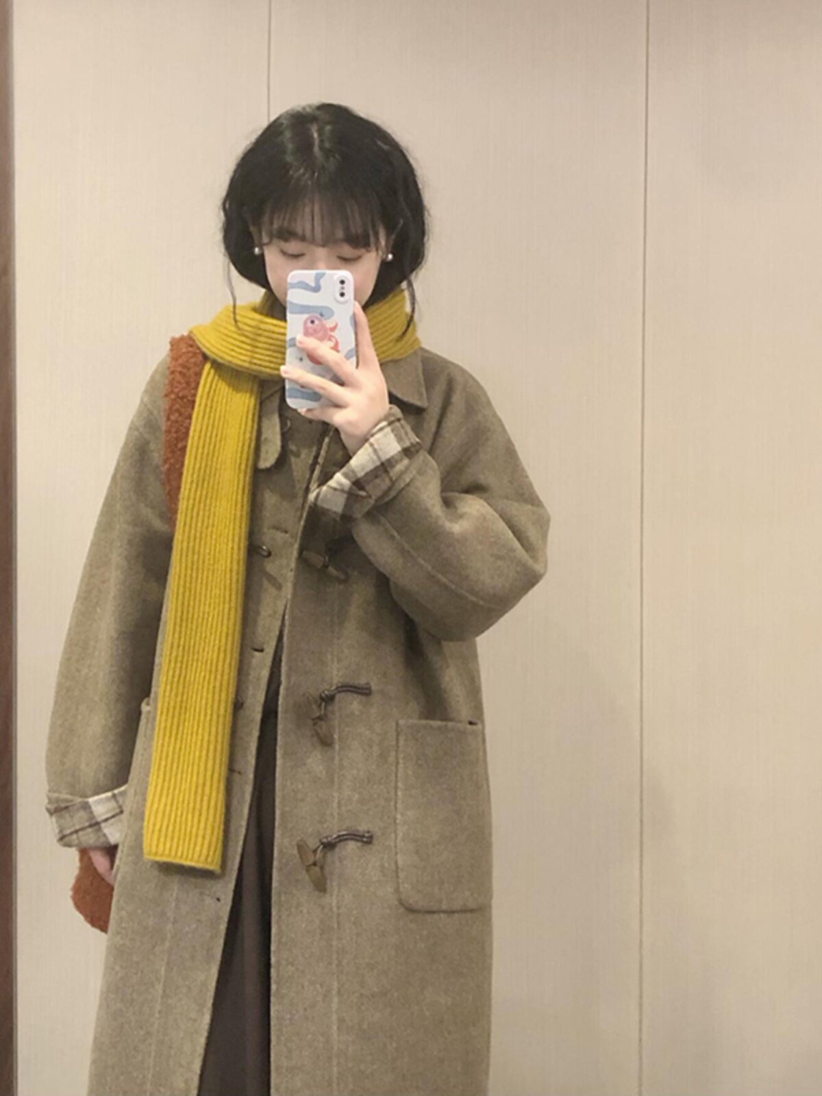 Horn Button Woolen Coat for Women 2024 New Autumn and Winter High-End Woolen Jacket Korean Style Petite Mid-Length