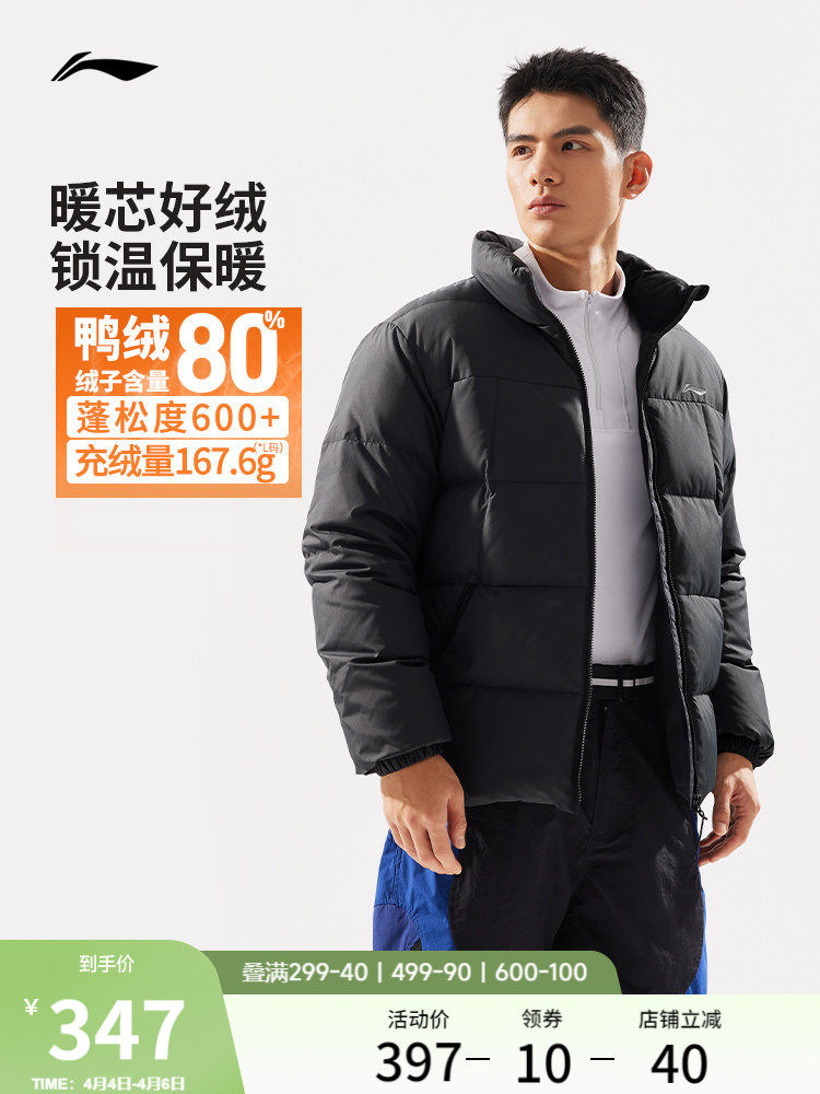 Li-Ning Men's down Jacket Winter New Short Style Fitness Stand Collar Top Warm Thickened Sportswear