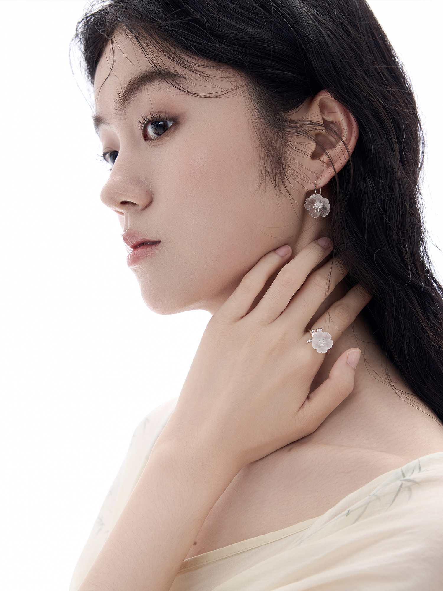 No Solution Plum Blossom Series Crystal Flower Open Ring Niche Luxury 925 Sterling Silver Ring