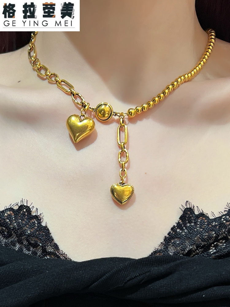 Gra Yingmei 5D Hard Gold Heart-Shaped Ball Necklace Bracelet Pure Gold 999 Black Gold Heart-Shaped Clavicle Necklace