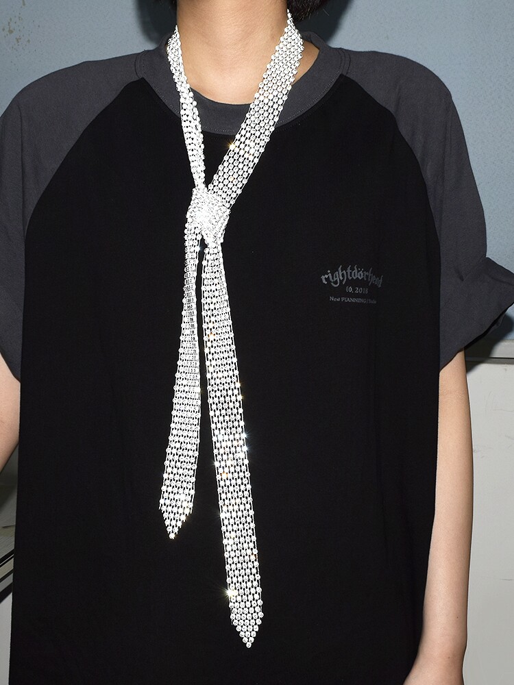 Prom Tie with Rhinestones, Shiny Rhinestone Women's Neck Decoration, Trendy Neckband, Crystal Long Necklace with Rhinestones for Men and Women