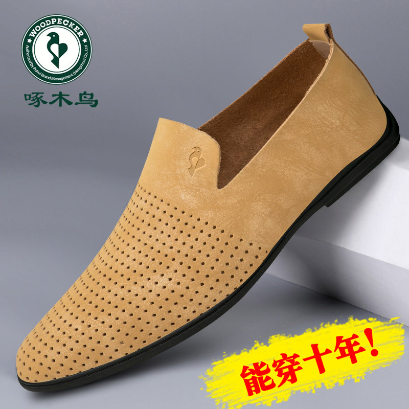 Woodpecker Brand Men's Shoes, New Summer Model, Hollow Breathable Single-Layer Leather Sandals, Men's Soft Surface, Soft Sole, Non-Slip Clogs