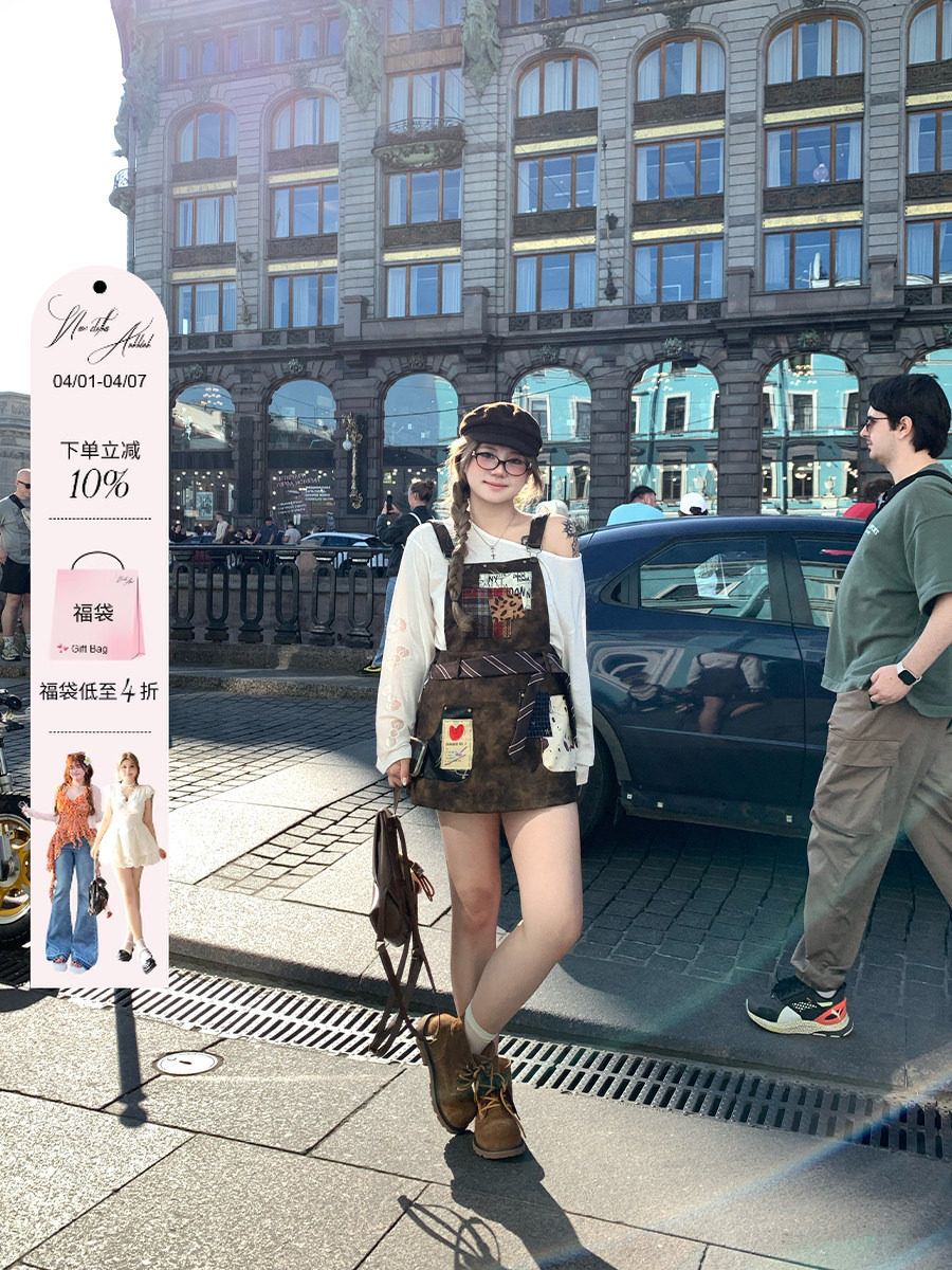 Annie Is Not Popular, Barn Wasteland Waxed Vintage Leather Skirt for Women, 2026 Spring New Style, Slightly Plus Size, American-Style Suspender Skirt