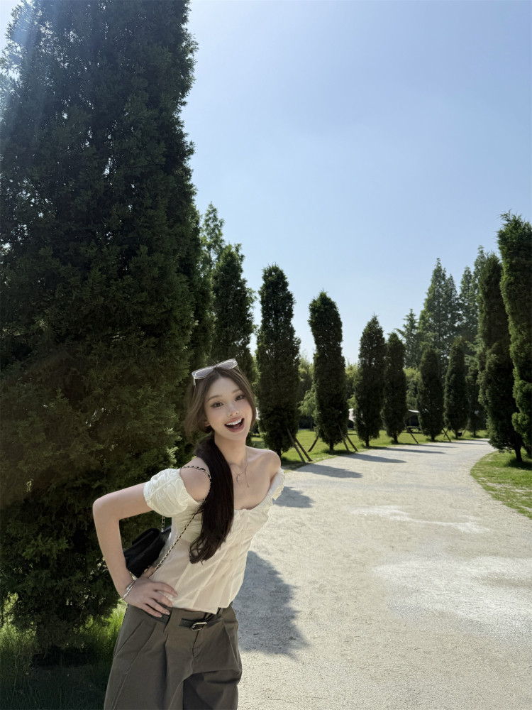 Yangzifan Tencel Acetate Linen Patchwork Sheer Blouse