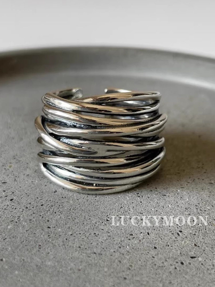 Luckymoon Vintage-Style Line Ring S925 All-Over Sterling Silver R110