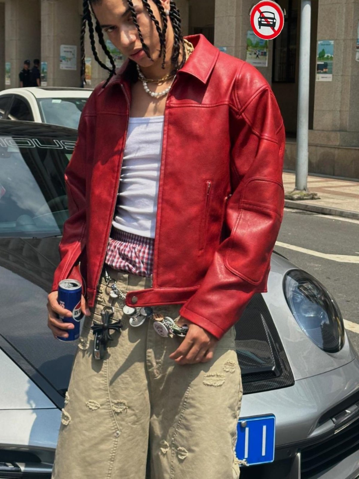 Trendy and Unique 2025 Li Chengxian Style Pu Leather Red Short Wide-Fit Lapel Jacket Leather Coat
