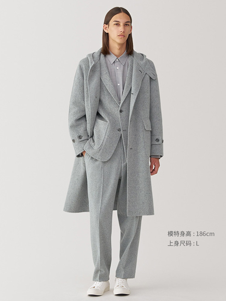 Muji Labo Men's Cashmere Blend Hooded Coat Woolen Coat Winter Jacket